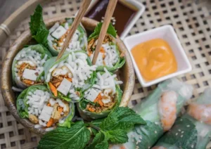 Rollito fresco de gambon con jamon de vietnam y tofu con salsa hoisin – cacahuete...